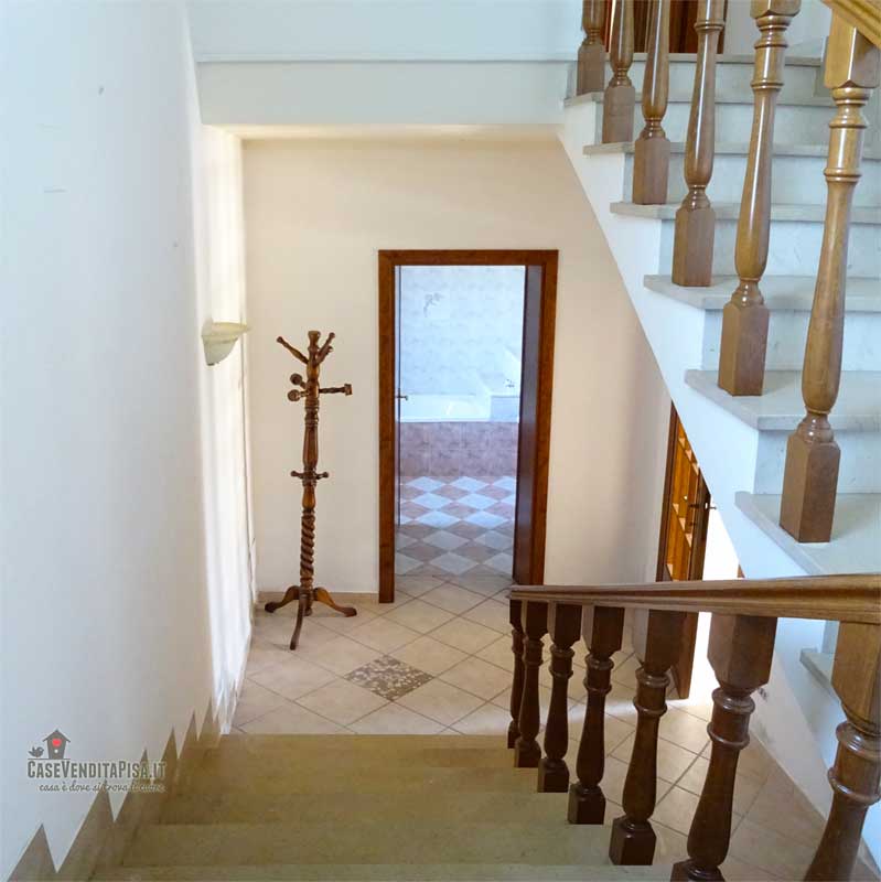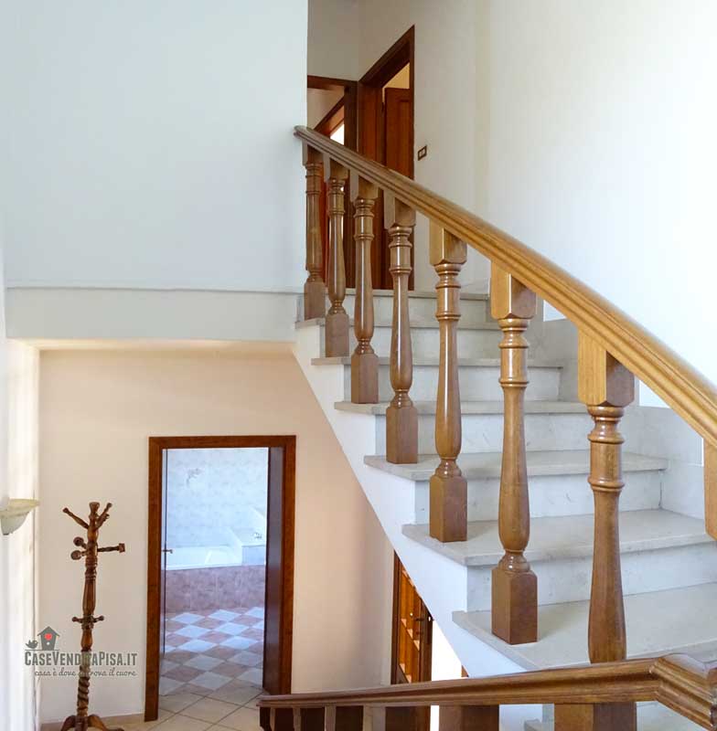2) Al piano primo, invece, si sviluppa tutta la zona notte che è composta da due grandi camere matrimoniali, di cui una completa di vano armadi e balcone, da uno studio che però può essere usato anche come terza cameretta, e dal secondo bagno con doccia che serve il piano.