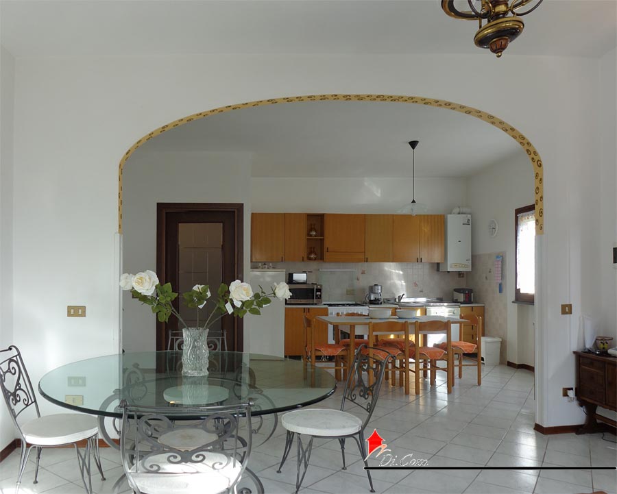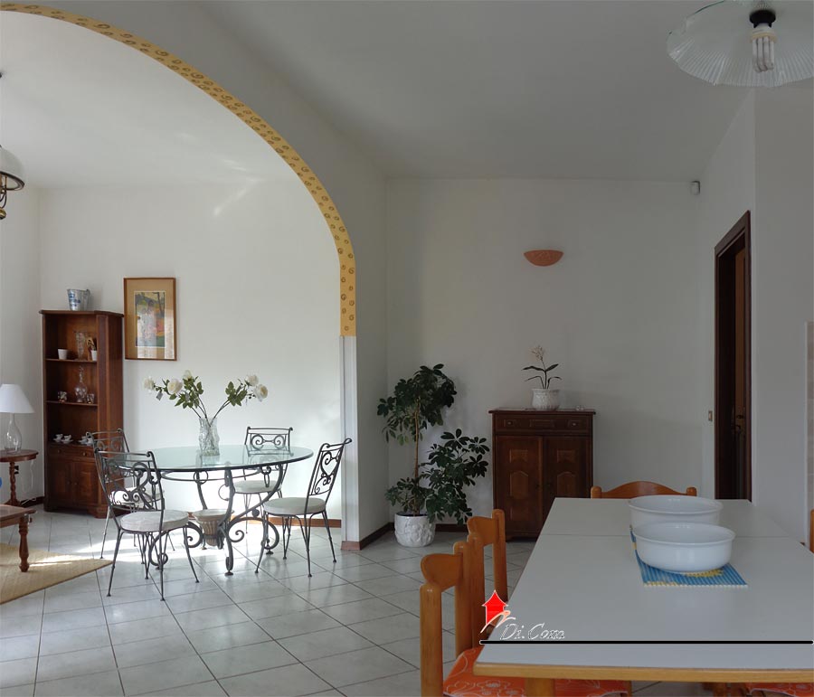 Ingresso in ampio e luminoso Soggiorno con ampia zona pranzo e angolo cottura, disimpegno notte, doppi servizi con finestra, Camera matrimoniale e Camera singola.