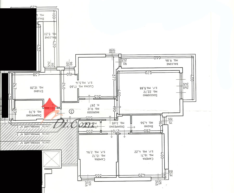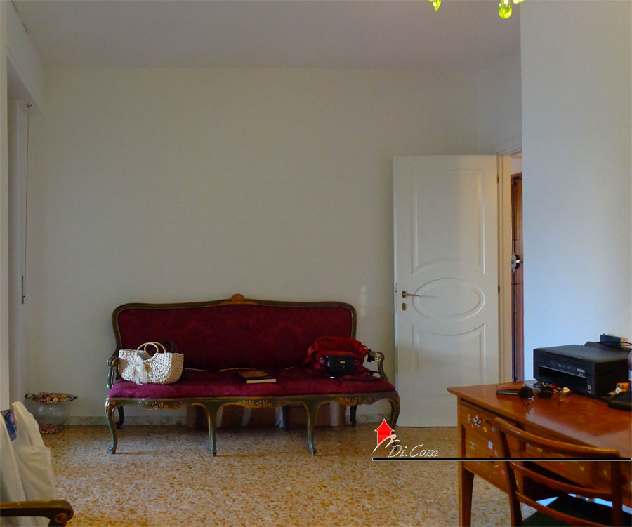 Ingresso tradizionale, luminoso Soggiorno doppio con balcone, Cucinotto con Tinello e accesso al balcone, doppio disimpegno, 2 Camere grandi ed uno studio con balcone (utilizzabile come terza camera), Ripostiglio e Bagno con vasca e finestra.