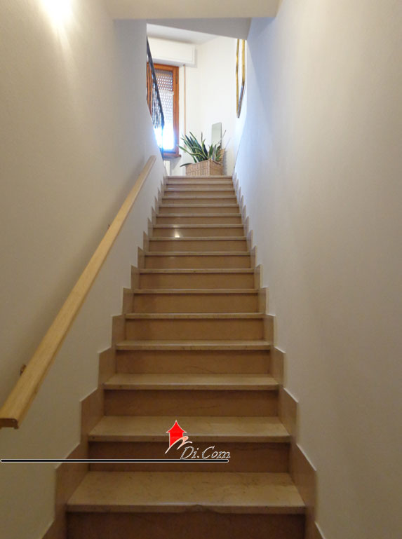 Ingresso indipendente con Stanza studio al Piano terra e Scala che porta al pianerottolo di disimpegno dal quale si accede all’appartamento vero e proprio; PRIMO PIANO: Ingresso tradizionale, luminoso Soggiorno con angolo cottura, 2 Camere (di cui una Matrimoniale ed una Singola), ed un Bagno con doccia e finestra.