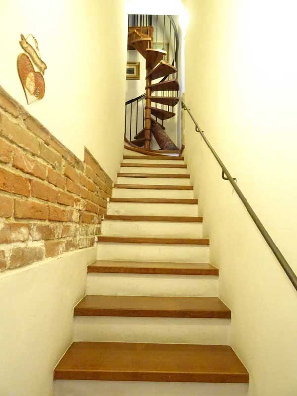 1) Il terratetto si sviluppa su 3 livelli. Al piano terra abbiamo l’ingresso nella zona giorno composta da salottino di 16 mq con camino, grande zona pranzo con cucina abitabile di 24 mq, studio di 7 mq e bagnetto di servizio al piano. Dal salottino si accede al piano primo composto da disimpegno, Bagno di buone dimensioni con doccia e finestra, e grande Camera matrimoniale di 16 mq. Dal disimpegno, inoltre, si sale in mansarda, pienamente abitabile e composta da ripostglio (che può facilmente divenire il terzo bagno, in quanto è situato proprio sopra il bagno del primo piano), e dall’altro ulteriore spazio di altri 16 mq utilizzabile tranquillamente come seconda Camera matrimoniale.