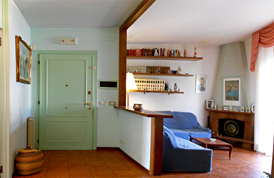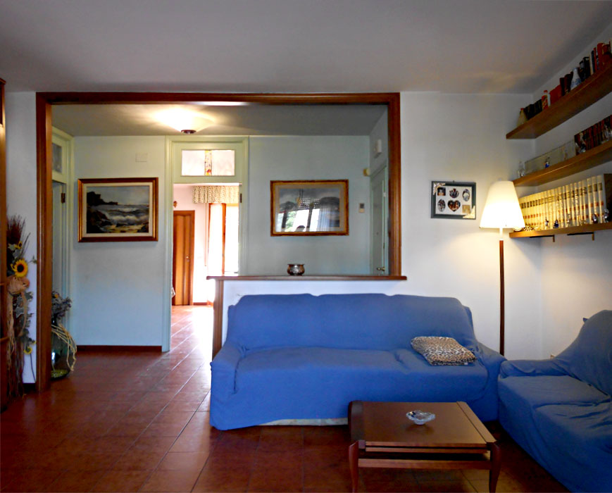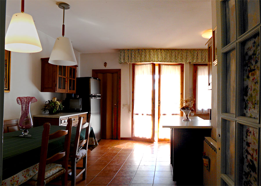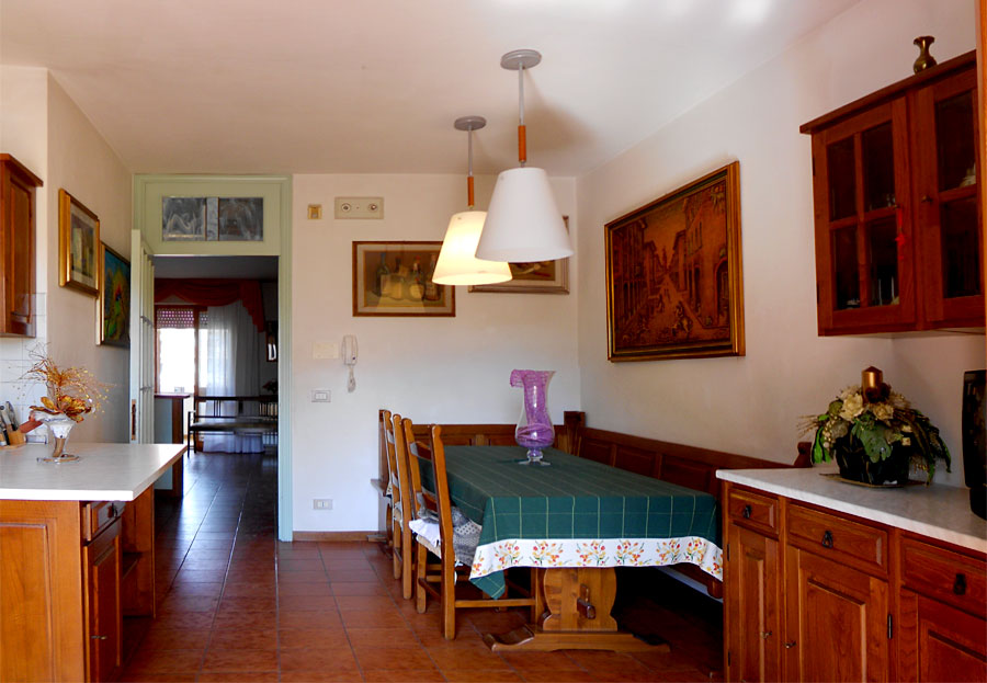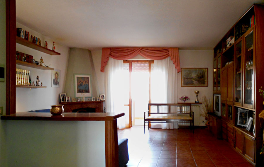 Ingresso in disimpegno, Salotto con Camino e accesso al balcone coperto (semi-abitabile e sviluppato su tutta una facciata), Cucina abitabile con balcone coperto e ripostiglio, disimpegno notte, 2 Bagni (di cui uno con vasca e uno con doccia), 3 Camere (di cui 2 matrimoniali ed 1 singola. Una delle matrimoniali con accesso al Balcone coperto comunicante con il salotto).