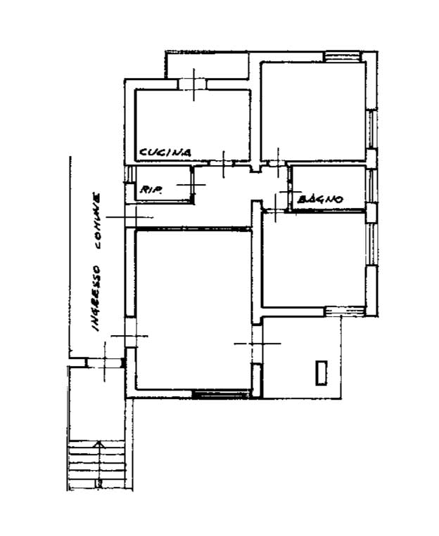 Appartamento di 4 vani, al piano primo ed ultimo, composto da ingresso in ampio soggiorno di 25mq con accesso alla terrazza sul fronte, ampio disimpegno con ripostiglio, cucina abitabile con balcone sul retro, disimpegno notte, due camere matrimoniali, e bagno.