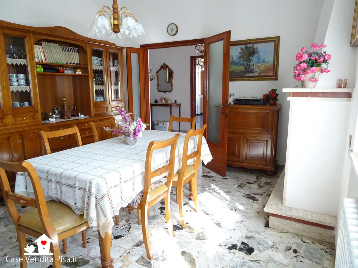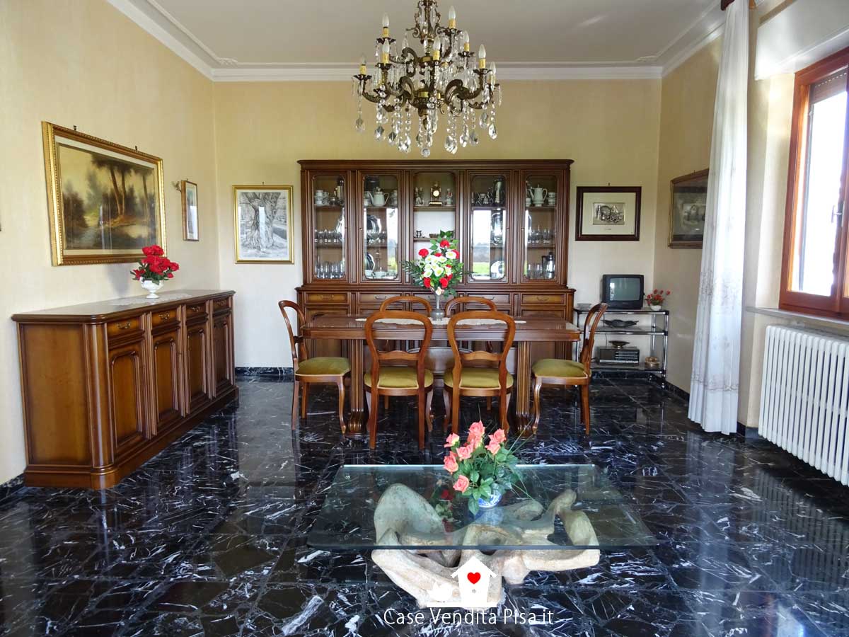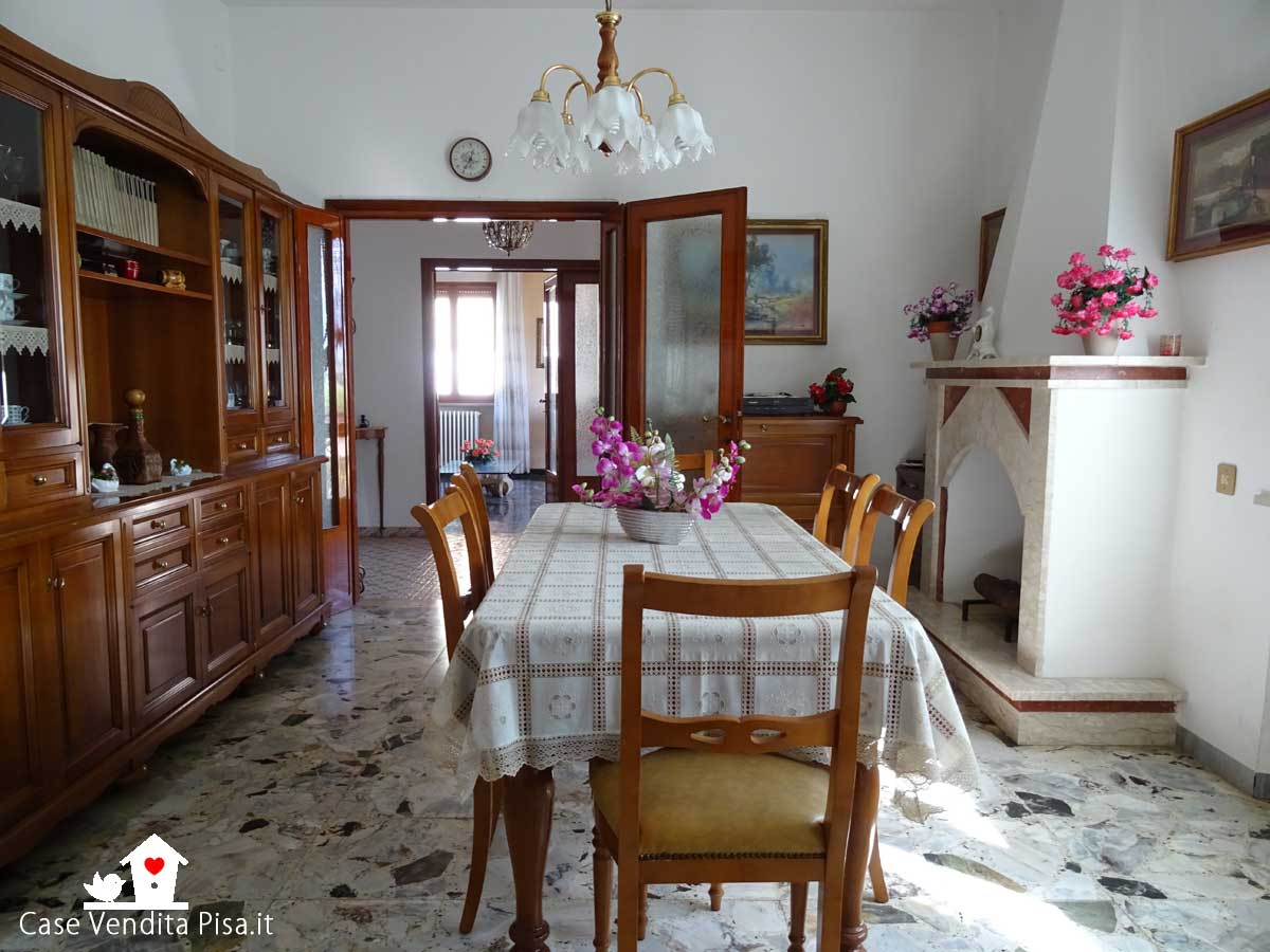 1) In ottima posizione fra San Giuliano Terme e Pisa, disposta tutta su di un livello ben rialzato da terra, la villa singola si compone di spazioso ingresso, ampio tinello/pranzo (nel quale abbiamo il camino, l’accesso al balcone e al giardino sul retro e il cucinotto con finestra che può essere aperto e unito al tinello, oppure trasformato in secondo bagno), ampio soggiorno con doppia finestratura e accesso al portico sul fronte, disimpegno notte, 3 camere da letto (di cui 2 matrimoniali ed una media), e dall’ampio bagno con anti-bagno.