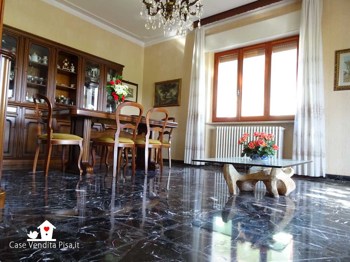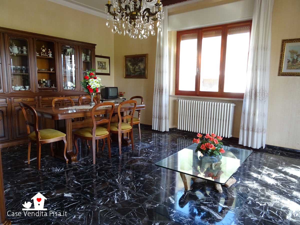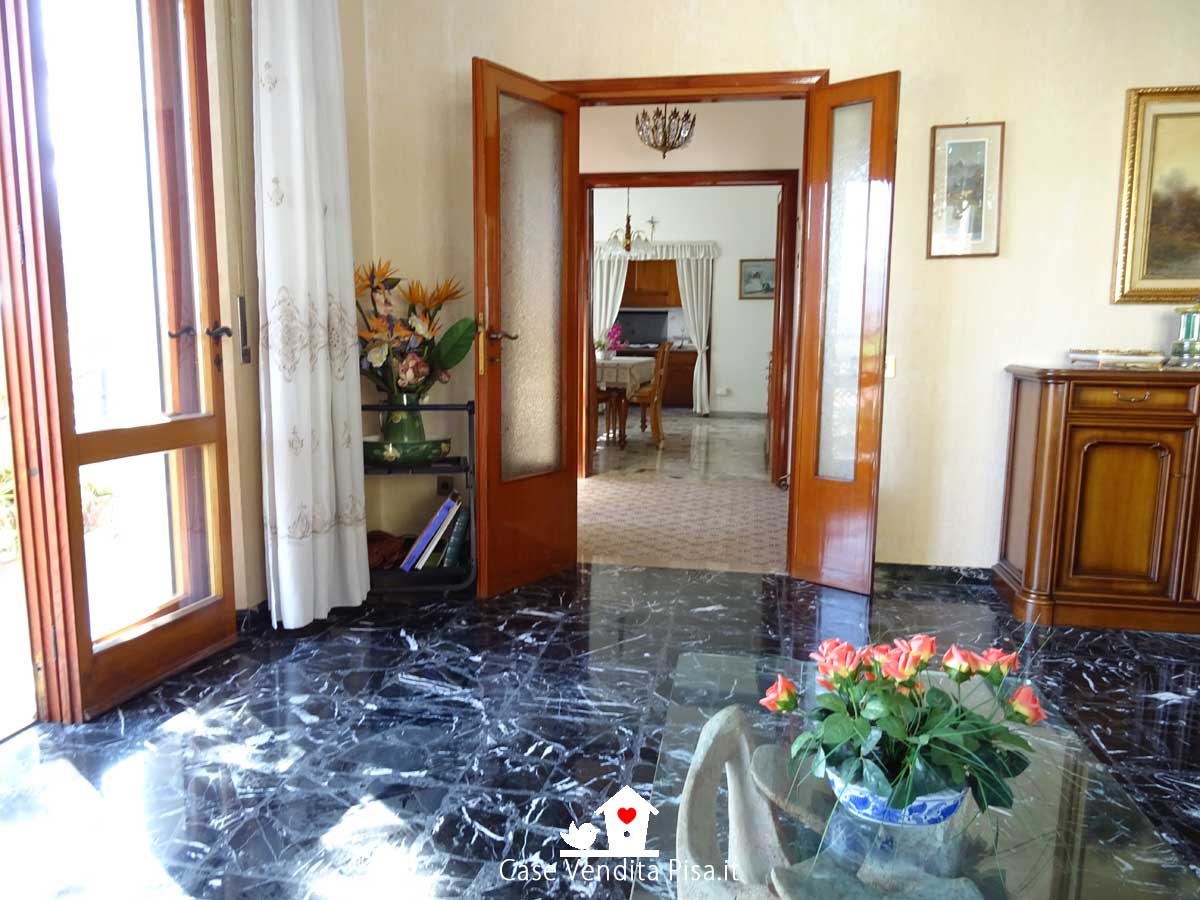 1) In ottima posizione fra San Giuliano Terme e Pisa, disposta tutta su di un livello ben rialzato da terra, la villa singola si compone di spazioso ingresso, ampio tinello/pranzo (nel quale abbiamo il camino, l’accesso al balcone e al giardino sul retro e il cucinotto con finestra che può essere aperto e unito al tinello, oppure trasformato in secondo bagno), ampio soggiorno con doppia finestratura e accesso al portico sul fronte, disimpegno notte, 3 camere da letto (di cui 2 matrimoniali ed una media), e dall’ampio bagno con anti-bagno.