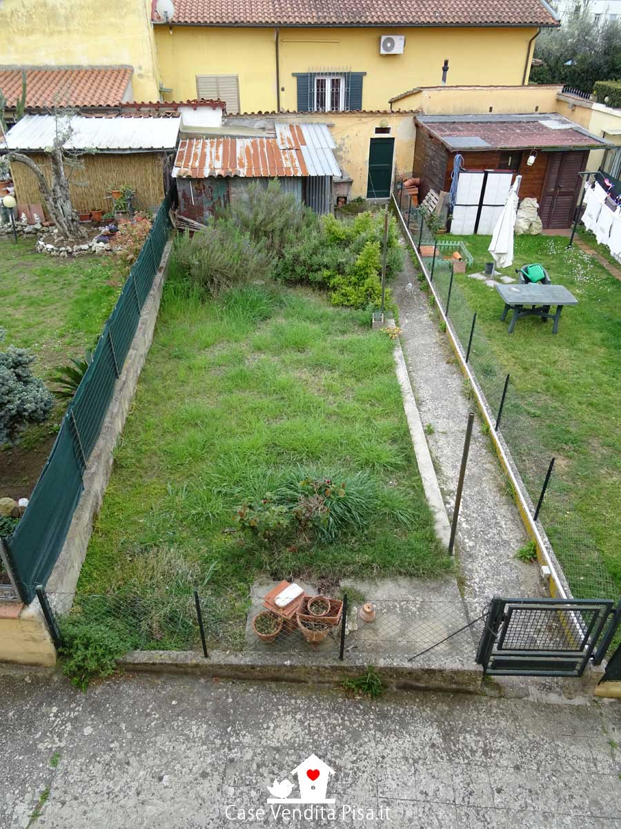 Esternamente abbiamo il giardino esclusivo di circa 80mq in cui sono presenti due piccoli annessi utilizzati come deposito e lavanderia. Nel bagno interno alla casa non è presente la doccia, ma solo i servizi, quindi andrebbe ristudiata la soluzione per inserirla. Inoltre, come tutti gli altri immobili adiacenti, non dispone di posto auto, quindi la macchina deve essere lasciata nel parcheggio libero poco più avanti a circa 30 metri da casa.
