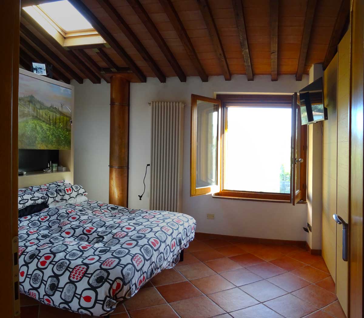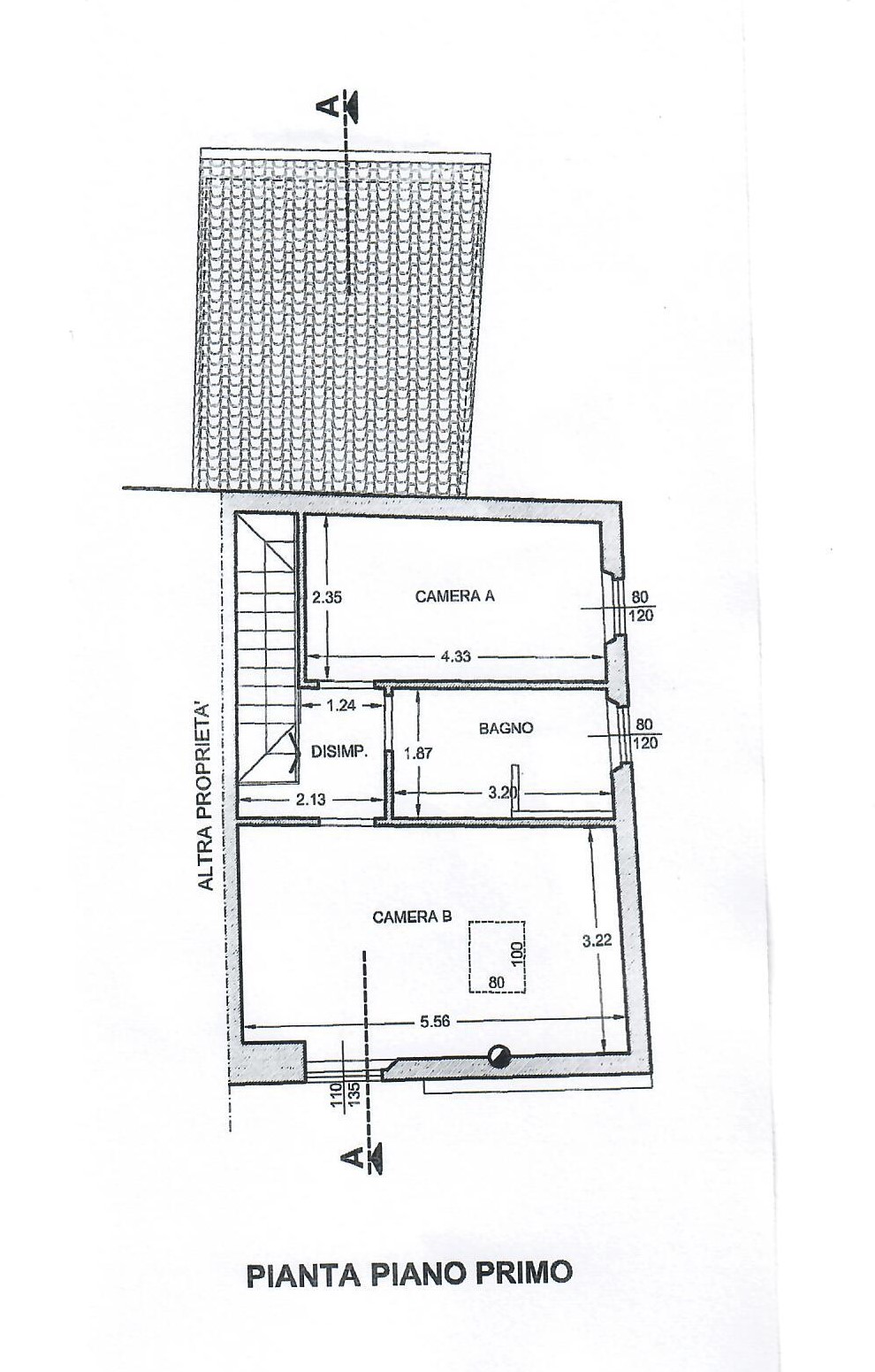 Al piano primo, tramite comoda scala, abbiamo il bagno con finestra e le due camere (una matrimoniale ed una singola).