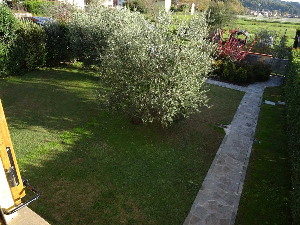Esternamente abbiamo il giardino ben tenuto di circa 400 mq, con accesso per due o più posti auto.