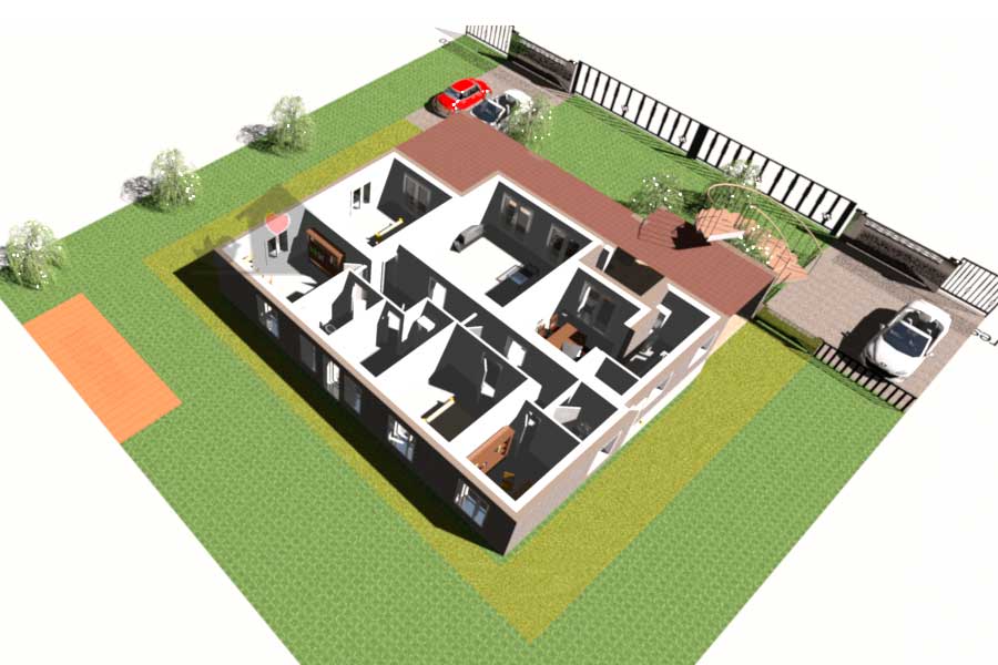 2) La villa, di grande metratura e con ampie stanze, è vivibile anche da due nuclei familiari (come genitori e figli, o nuclei familiari amici) che, grazie alla predisposizione del taglio, possono restare comunque molto indipendenti gli uni dagli altri, con possibilità di viverla come una classica villa bifamiliare con accessi e giardino indipendenti. Il che la rende un’ottima soluzione anche come casa al mare in comune con parenti.