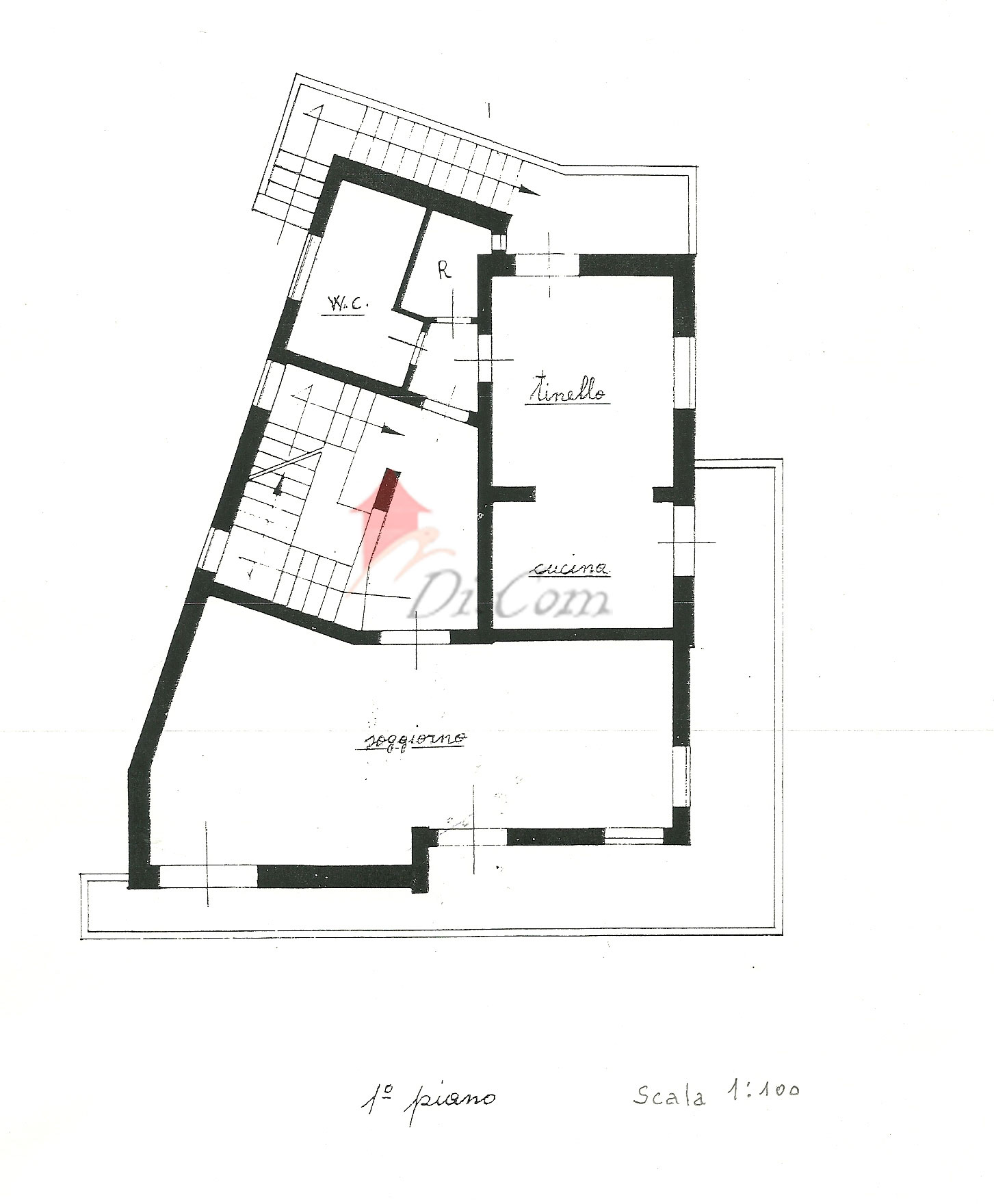 PIANO PRIMO (100mq lordi): al piano si accede tramite scala interna o esterna direttamente dal giardino che accede alla zona pranzo con Cucina abitabile e accesso al terrazzo, disimpegno, Ripostiglio, Bagno con finestra ed ampio vano scala dal quale si accede al grande soggiorno molto luminoso con camino e che affaccia sul terrazzo e che gira su due lati della villa;