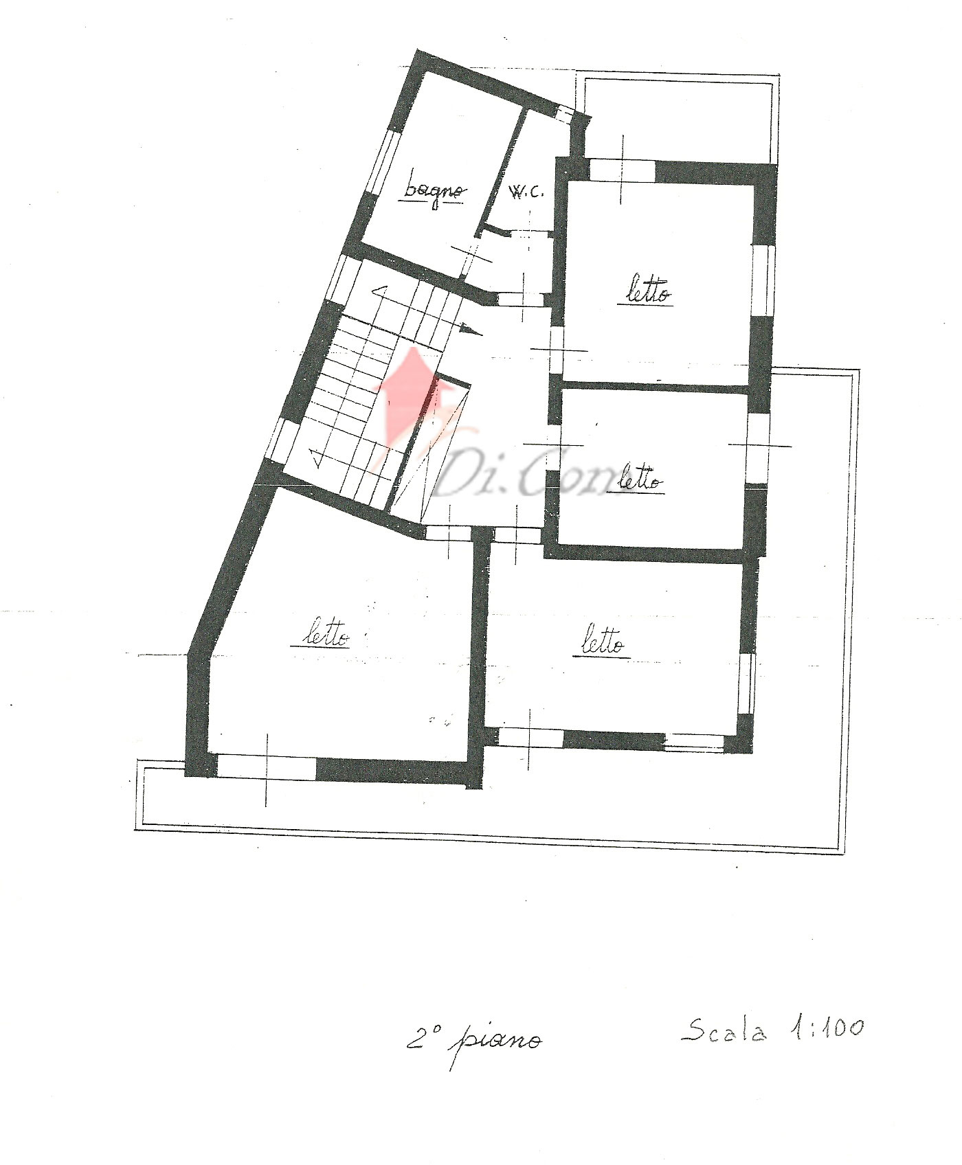PIANO SECONDO (100mq lordi): il secondo piano è composto dal disimpegno con armadio a muro, 4 Camere (di cui due matrimoniali, una media ed una singola), disimpegno con 2 Bagni al piano (uno con doccia ed uno con vasca, entrambi con finestra). Tutte le camere hanno l’accesso al terrazzo.