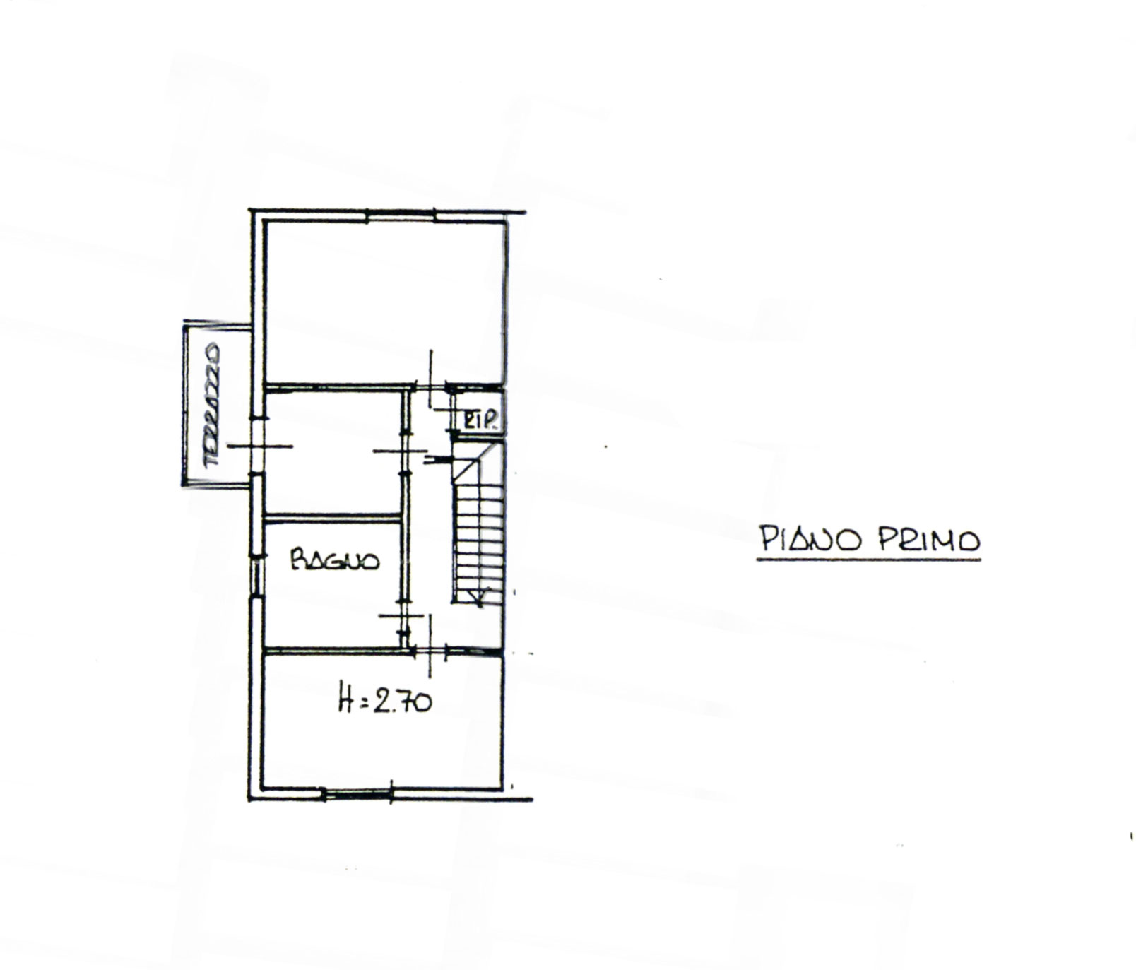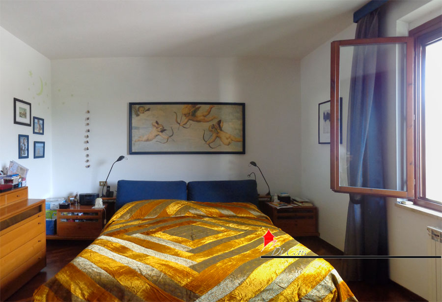 PRIMO PIANO: parquet ovunque, ampia camera matrimoniale di 19 mq, camera doppia di 18 mq, cameretta-studio di 7 mq con terrazzo, bagno grande di 9 mq con finestra doccia e vasca, ripostiglio di 1,3 mq con armadio a muro, ballatoio vano scale ampio e confortevole;