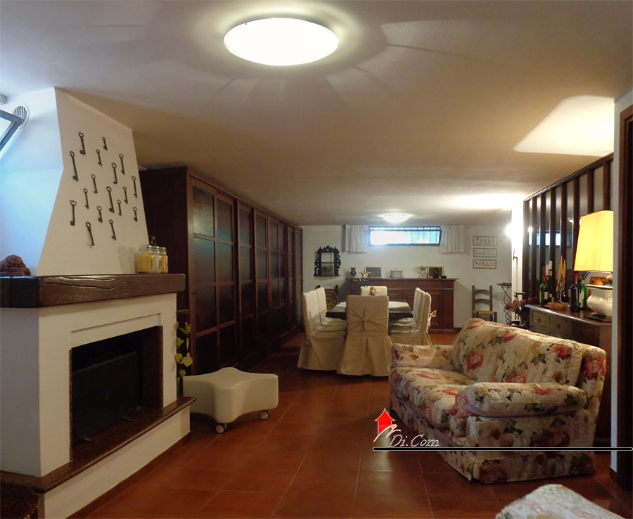 TAVERNA: taverna di 50 mq totalmente pavimentata, con camino in granito bordeaux, due finestre, grande vetrata artistica bordeaux, ripostiglio e vano scale con accesso al giardino, reparto autoclave e dispensa totalmente in muratura separata da porta.